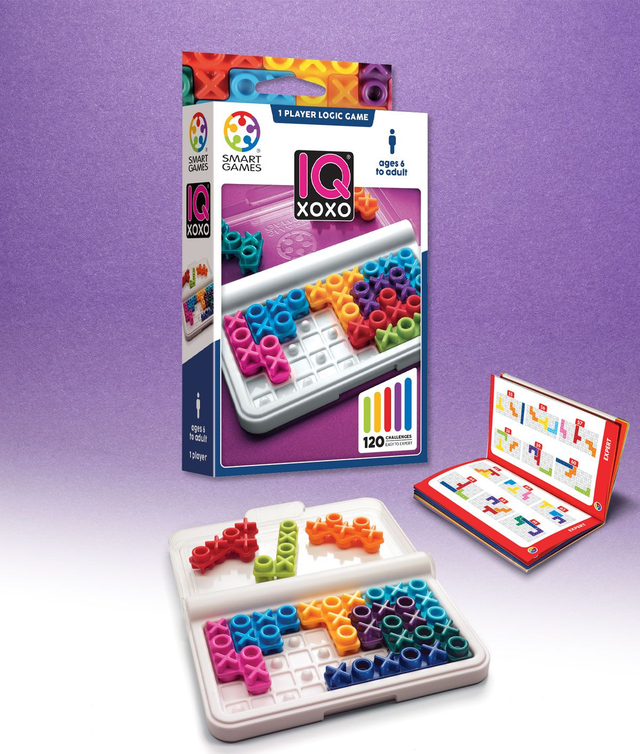 Knuffels en kussen…, maar hou je hoofd erbij! Vul het spelbord van het IQ XoXo-spel met de tien kleurrijke gespiegelde, dubbelzijdige pentominopuzzelstukken. Maar zorg ervoor dat elke X gevolgd wordt door een O, zodat je een duidelijk XOXO-patroon krijgt. Het spel bevat 120 spannende opdrachten die voor urenlang spelplezier zorgen!